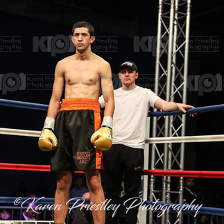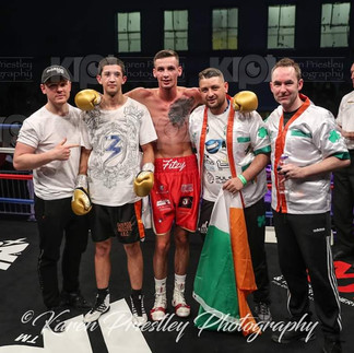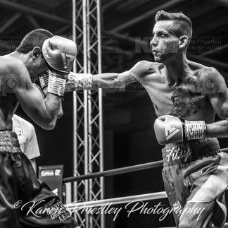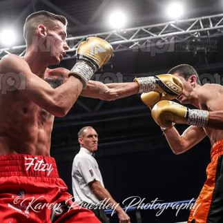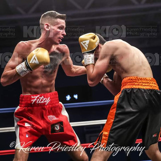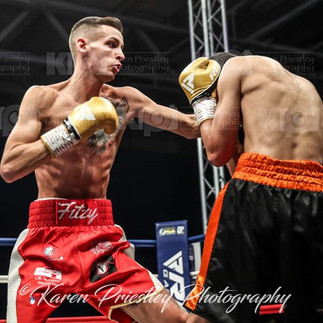 Ed Harrison in his 2nd pro fight faces 6ft 1inch Lightweight Matt Fitzsimons. Ed loses on points 39-37. Ed Harrison commentating after the fight said "I got the call off Kieran for the fight at 10am this morning. We were in London yesterday with Craig and Kieran for Ryan Hibbert's fight on sky sports. Me and Craig actually trained Thursday night at KO boxing gym in London with Dan Smith. I went to the Gym this morning and did the usually 11am session and then had to go Oldham at 4pm with Winny to fight Matt who's just flown in from Ireland. I couldn't believe the size of him when I saw him. He's definitely the tallest lightweight in the UK. It took me a while to adjust to the size but I think I won the last round. Matt is a top fighter and uses is range really well. It was really hard for me to close the distance. Now I'm off to watch Will Goldie fight at the Layton institute".